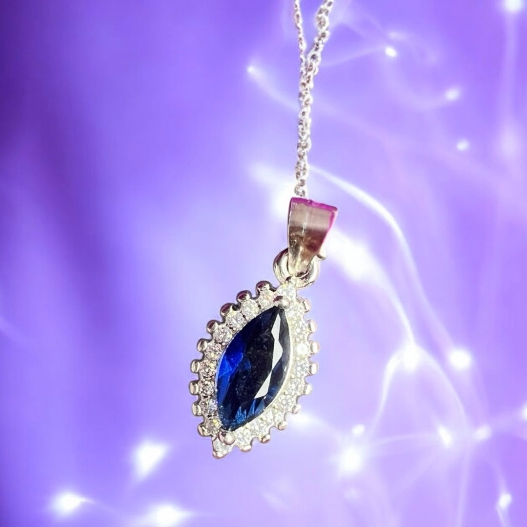 Make a royal statement with this marquise-cut deep blue set in 92.5 silver. Surrounded by a dainty CZ halo, it’s a classic masterpiece for the modern muse.