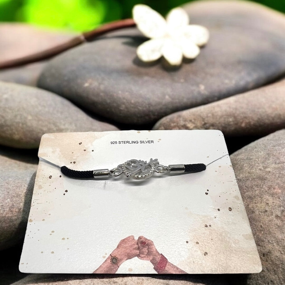 Spiritual and stylish, the Om Rakhi is a symbol of peace, harmony, and protection. Crafted in radiant silver and surrounded by shimmering stones, it reflects the eternal connection between brother and sister, rooted in love and sacred energy.